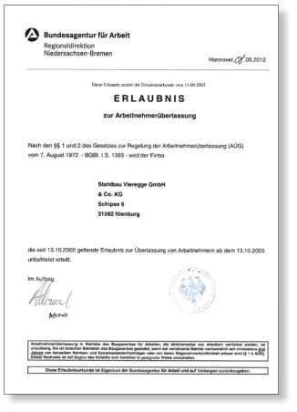 Die Bundesagentur für Arbeit hat uns 2003 die Erlaubnis